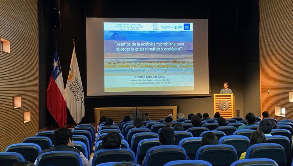 Con la participación Autoridades institucionales y de la Facultad de Recursos Naturales, Académicos, Académicas y estudiantes los programas de Doctorado y Magíster en Ciencias Agropecuarias, se realizó la Charla Magistral “Desafíos de la Ecología Microbiana para abordar la crisis climática y ecológica”, dictada por la prestigiosa Dra. Cristina Dorador de la Universidad de Antofagasta.