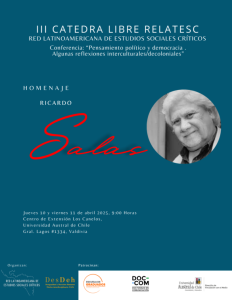 La III Conferencia Internacional de la Red Latinoamericana de Estudios Sociales Críticos (RELATESC), realizada este año en la Universidad Austral de Chile, Valdivia, estuvo centrada en el homenaje que se realizó al académico, Dr. Ricardo Salas Astrain, Director del Programa de Doctorado en Estudios Interculturales de la UCT por su invaluable aporte al pensamiento político, la teoría de la democracia y la interculturalidad.