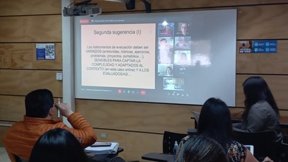 Los estudiantes se mostraron motivados e interesados por los planteamientos del Dr. Santos Guerra, quien analiza los principios y patologías de la evaluación y propuestas de mejora. En tal sentido, manifiesta que “la evaluación no es una acción de naturaleza técnica, si no que ética, por lo tanto, es necesario cuestionarse a quien va a beneficiar cuando se realiza y que valores se llevan a cabo, siendo lo más importante ver la evaluación, como una forma de comprensión para mejorar la práctica evaluativa”.