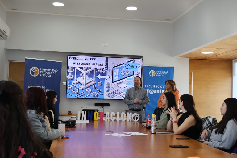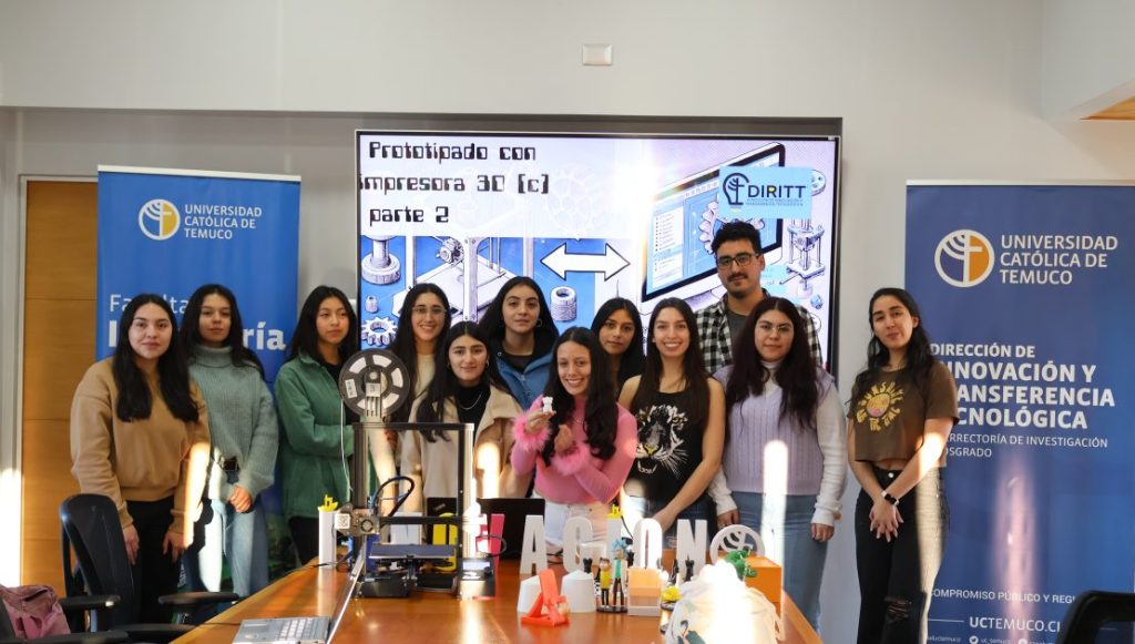 Doce mujeres estudiantes de la Facultad de Ingeniería de la UCT participaron del Taller de Prototipado dictado por Israel Díaz, gestor tecnológico de Dirección de Innovación y Transferencia Tecnológica, DIRITT, y encargado de Protolab.